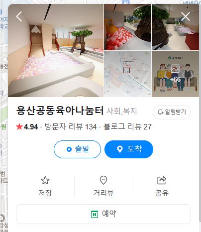 네이버 예약 검색창에서 “용산공동육아나눔터”를 검색하시면 예약 페이지로 연결됩니다.
